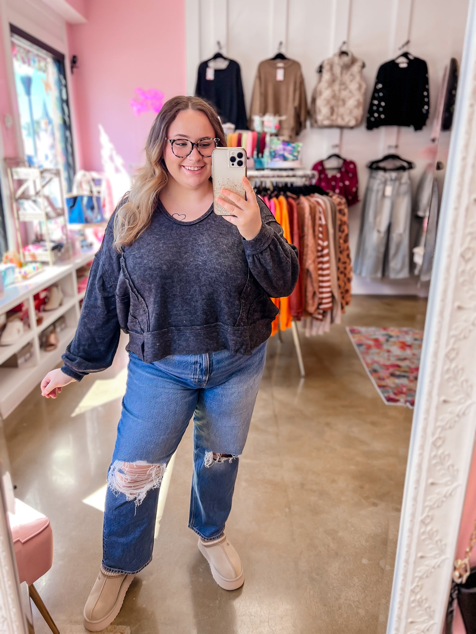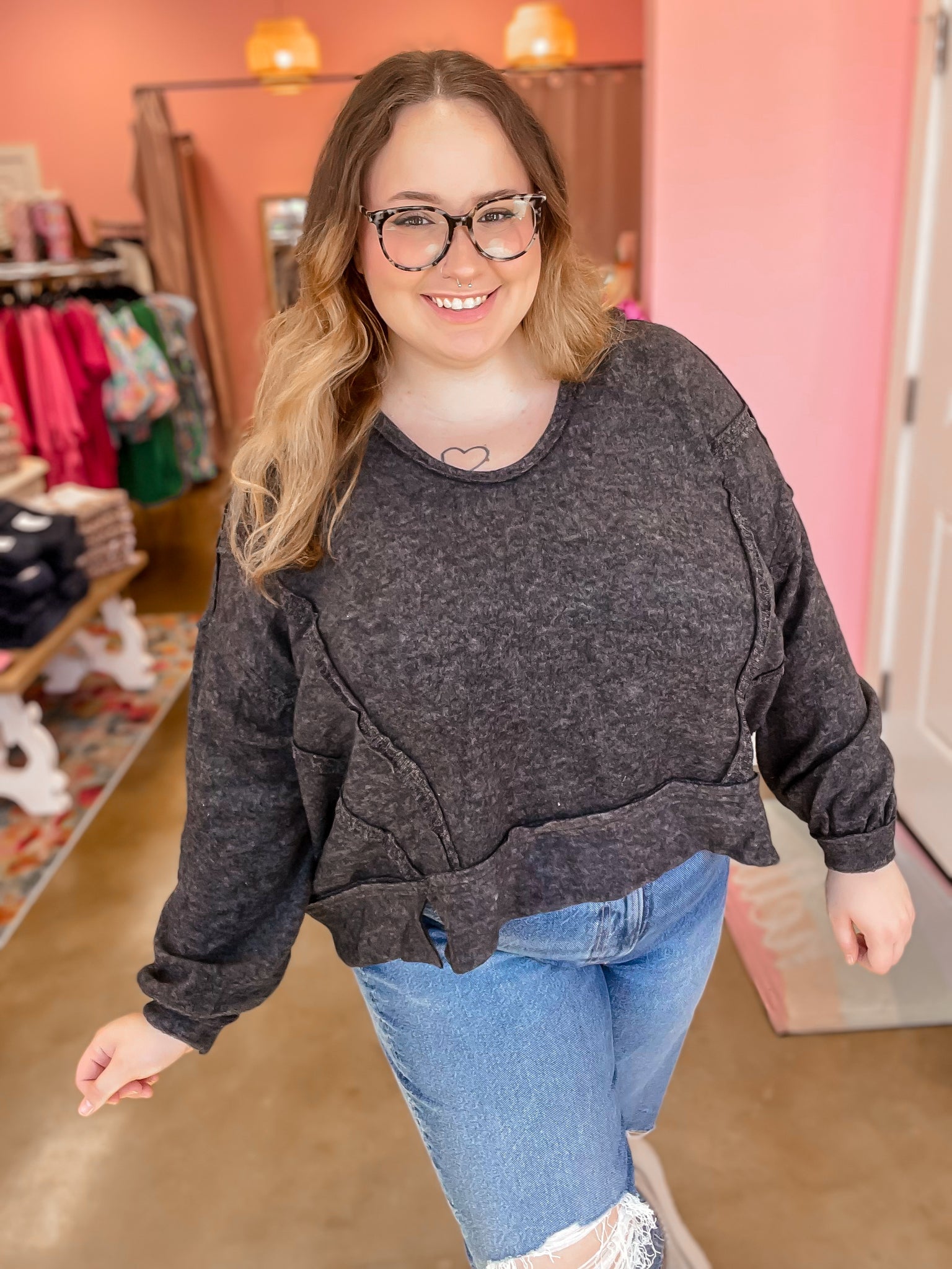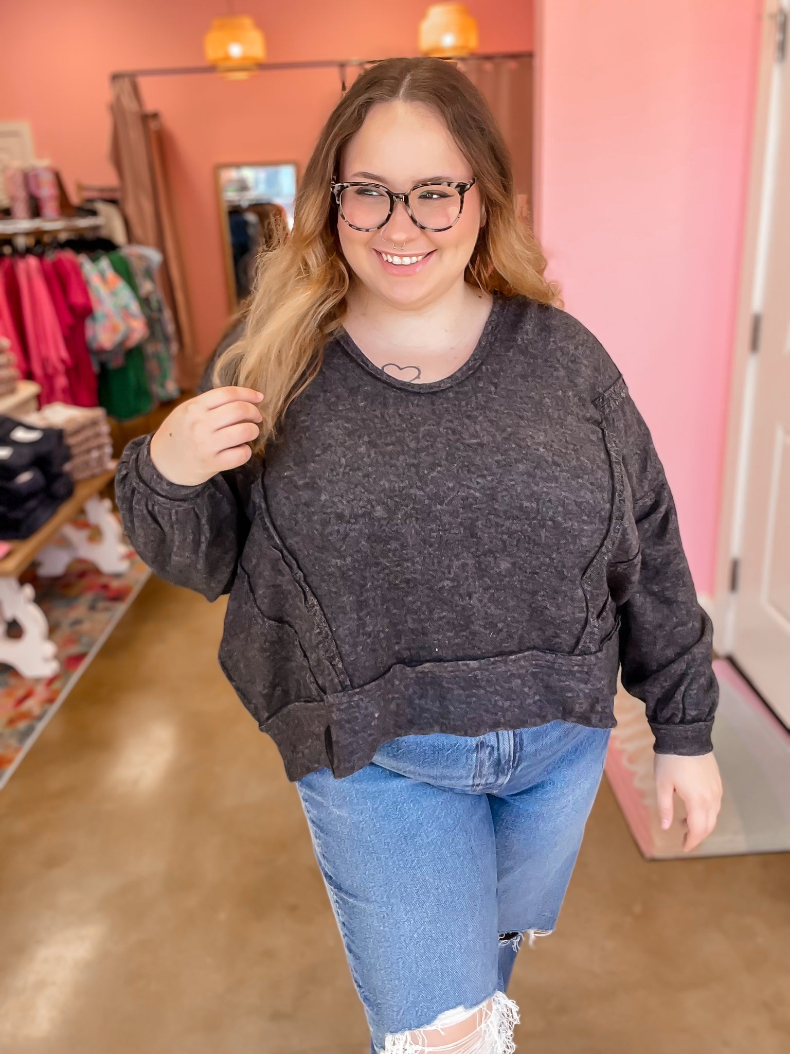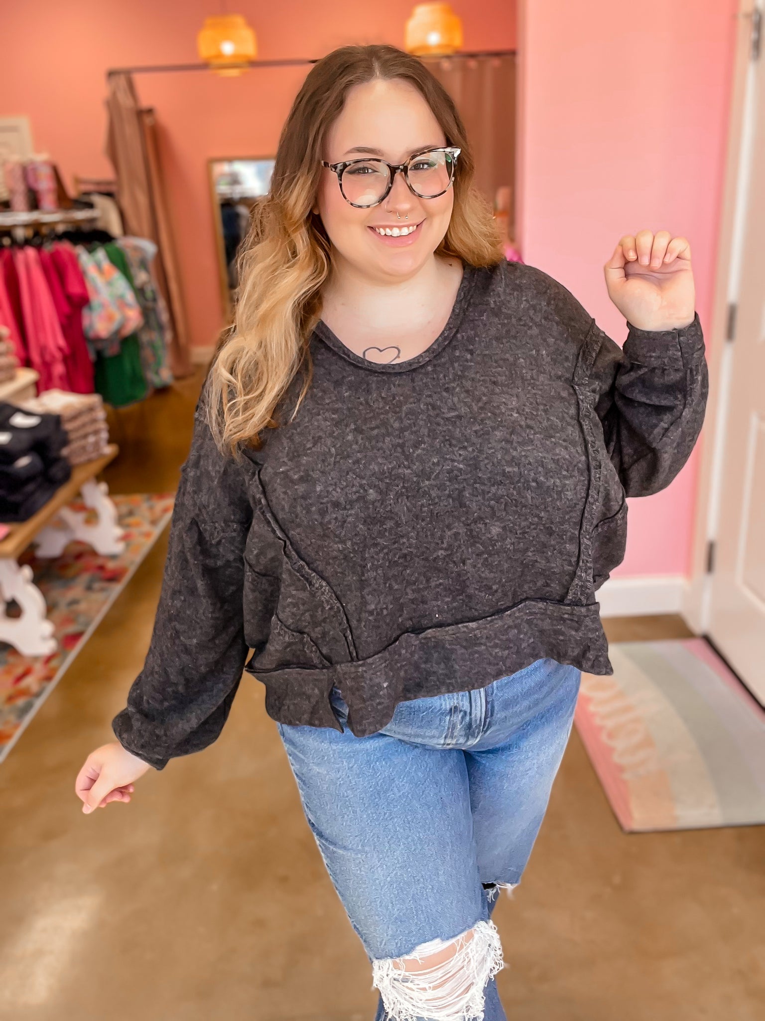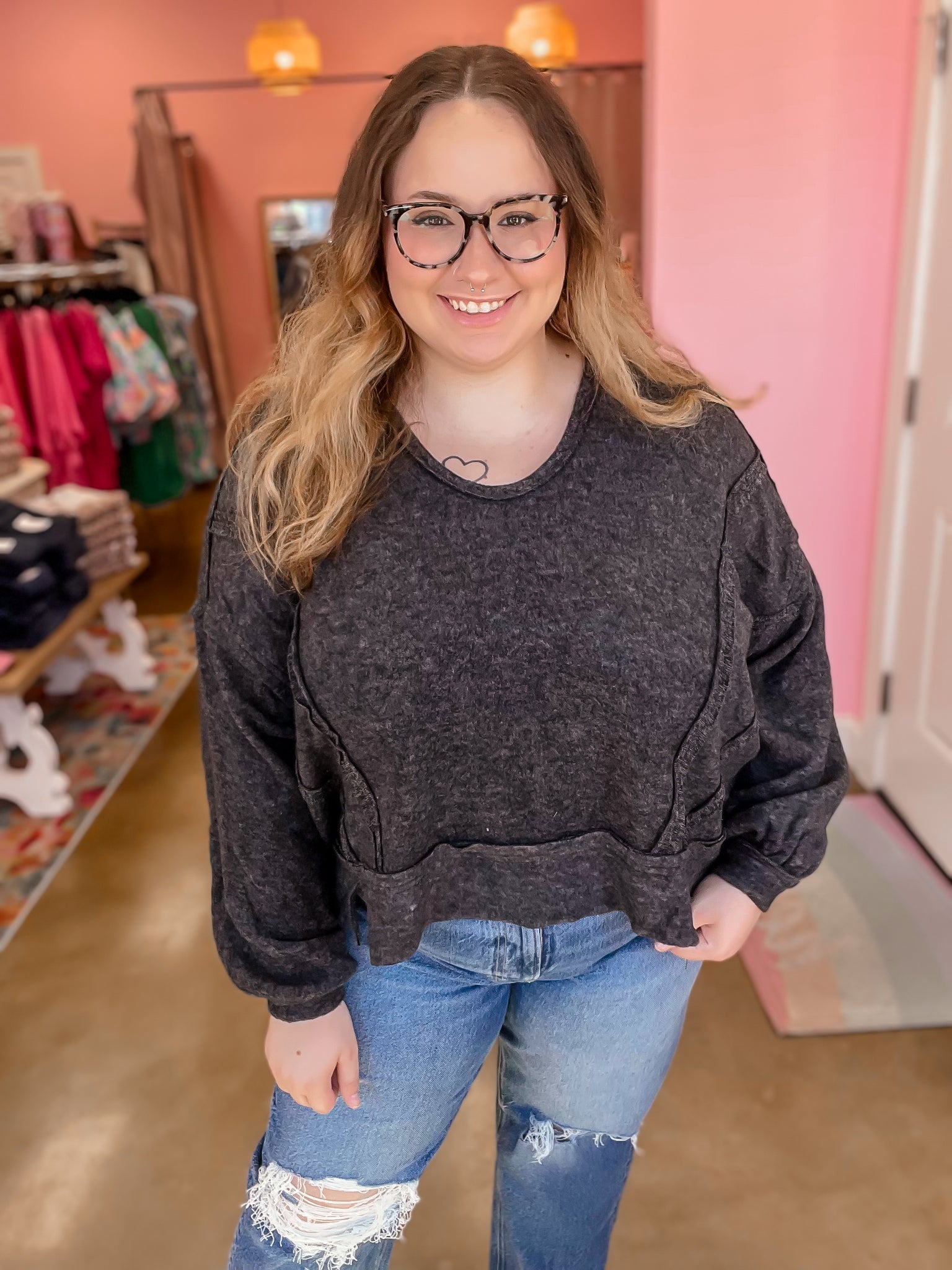 BRUSHED HACCI BALLOON SLEEVE HOODIE WITH EXPOSED SEAM